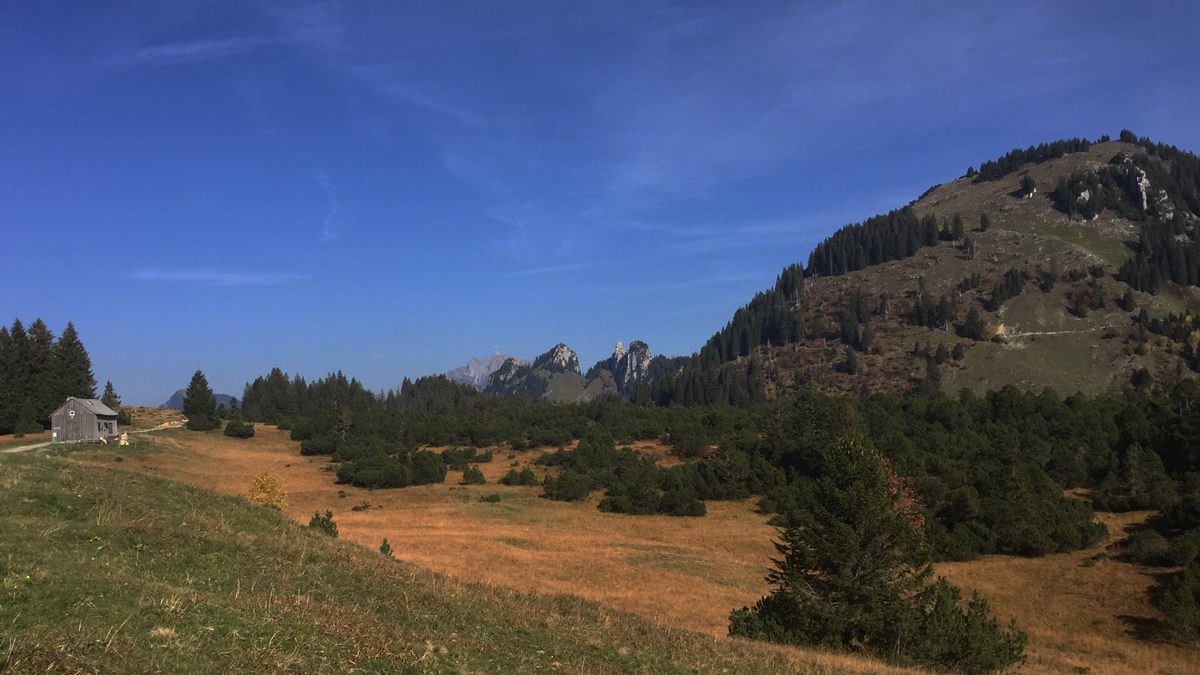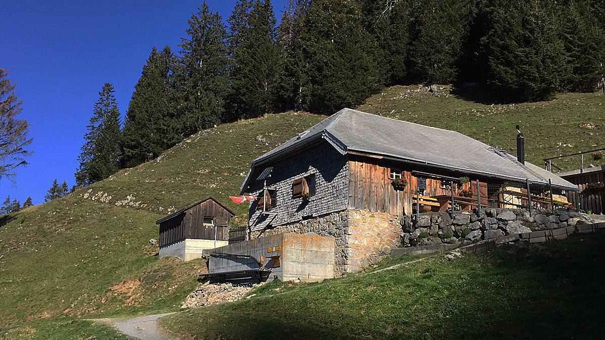 Man gelangt zu einer weiteren Möglichkeit, sich verpflegen zu können, die Hütte Altschen, welche dem Skiclub Amden gehört und auch von ihm unterhalten wird. Heute war sie aber nicht mehr bewirtet. Der Weg führt nun sanft bergab über Bergwiesen und Almen und nach kurzer Zeit erreicht man den Endpunkt Arvenbüel.