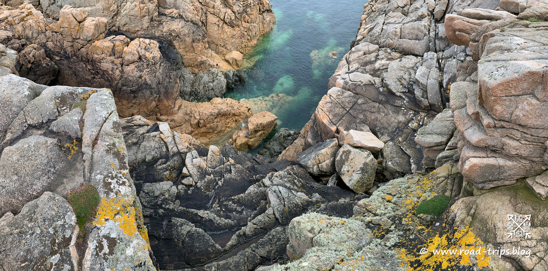 Heute wollten wir einen ersten Teil der äusserst bekannten Côte de Granit Rose (bretonisch: Aod ar Vein Ruz) besuchen. Dies ist ein Küstenabschnitt der nördlichen Bretagne zwischen Paimpol und Trébeurden. Wegen seiner bizarren Felsformationen aus rötlichem Granit, vor allem rund um Perros-Guirec, gilt er als Touristenattraktion. Seine eindrücklich charakteristische Färbung verdankt der Rosengranit seinem Gehalt an Hämatit und Alkalifeldspat. Der Rosengranit bildete sich vor ungefähr 300 Millionen Jahren. Aufgrund ihrer markanten Formen haben einige der oft hausgrossen Felsen Eigennamen erhalten, wie etwa Napoleons Hut, der dem Hafen von Ploumanac’h vorgelagert ist. Er erlangte besondere Berühmtheit, da die BBC am frühen Abend des 3. August 1944 mit der als Code gesendeten Frage «Le chapeau de Napoléon est-il toujours à Perros ?» der Résistance das Signal zum bewaffneten Aufstand gegen die deutsche Besatzungsmacht in der Bretagne gab.