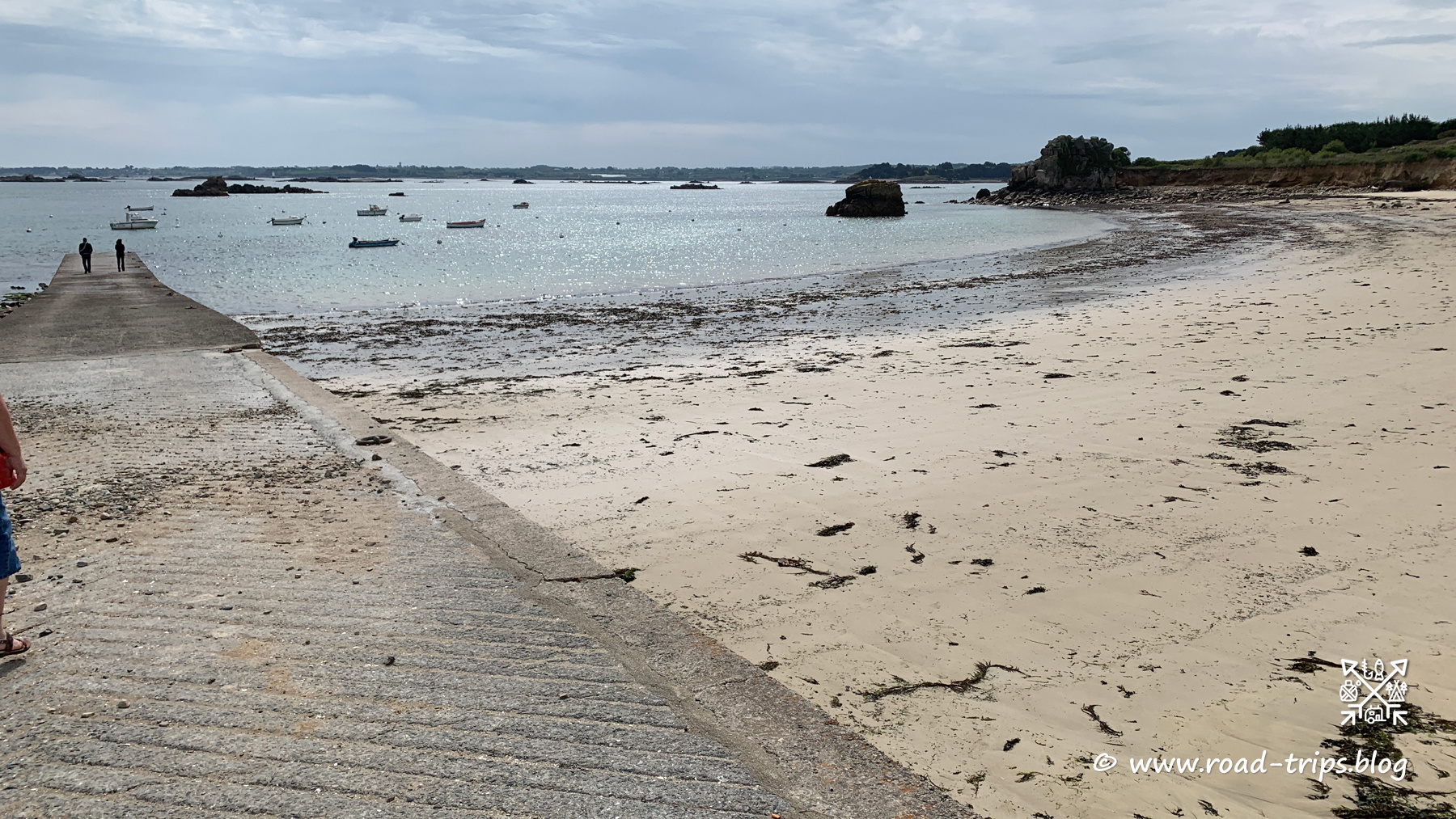 Den nächsten kurzen Halt legten wir im Naturschutzgebiet «Le Sillon de Talbert» ein. Dies ist eine aus Sand bestehende Landzunge, welche vor 6’000 Jahren entstanden ist und weit ins Meer hinausreicht. Ein Weg führt bis zur äussersten Spitze. Selbstverständlich müssen die Gezeitenströme vorher genau abgeklärt werden, sonst gibt es nasse Füsse.