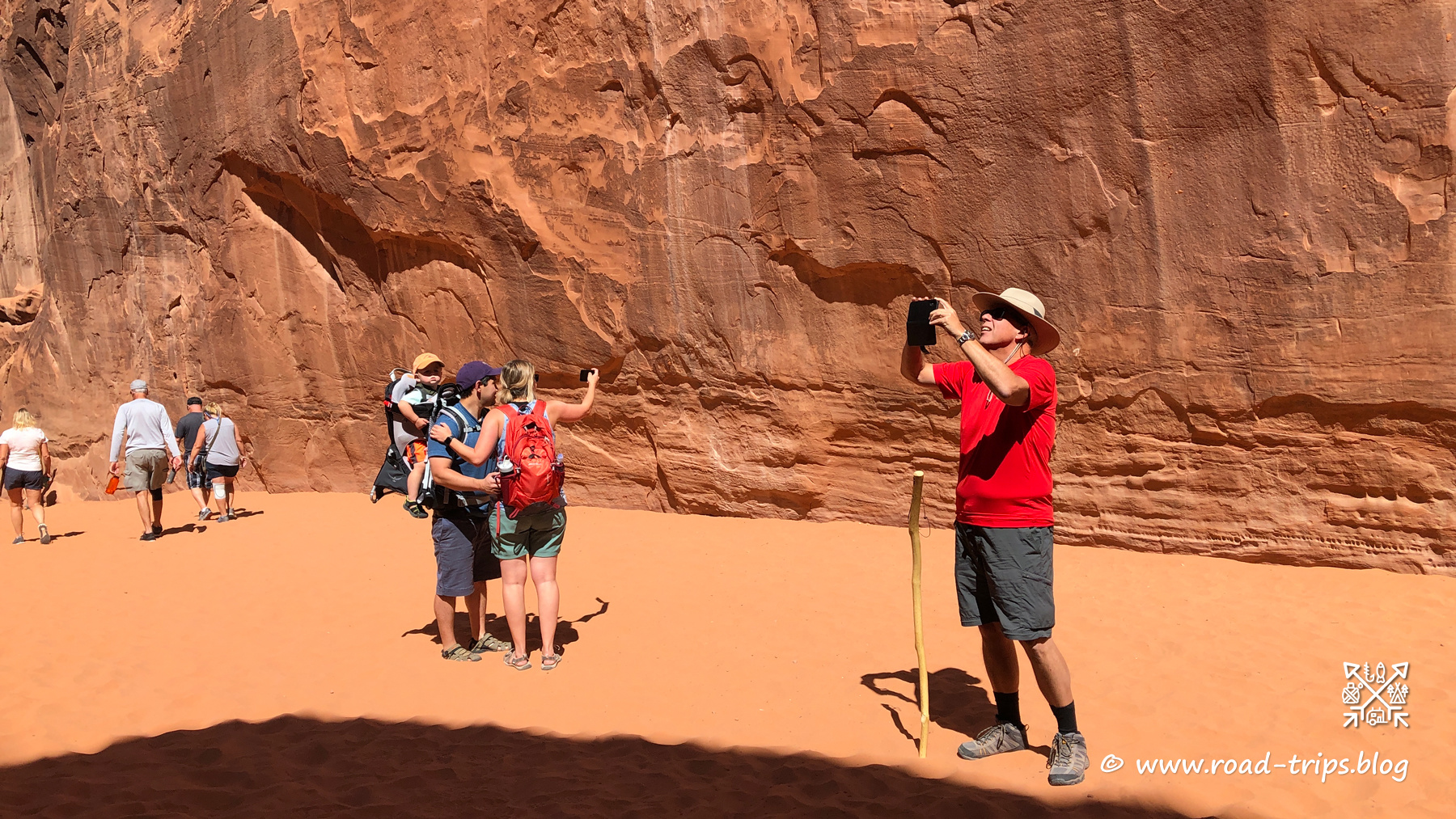 Unter kundiger Leitung des Junior Rangers Elliott machten wir uns auf den Weg in den Arches National Park, um den Broken und Sand Dune Arch zu besichtigen. Im Vergleich zum letzten Besuch (Link) herrschte heute noch mehr Betrieb, und wir hatten Mühe, einen der begehrten Parkplätze zu ergattern. Den letzten freien Platz konnten wir knapp sichern. Nach einer kurzen Stärkung war unser Führer bereit, und es konnte losgehen !